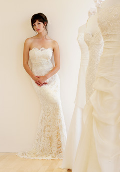 This Chantilly lace and satin gown will be great for the beaches of Jamaica.