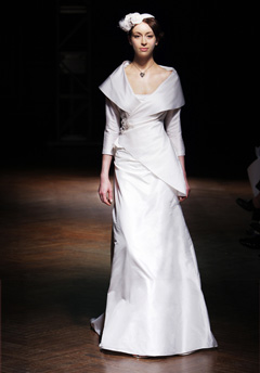 You know I can’t forget my religious brides. This gown is strapless but can be worn with the French cut jacket.