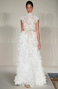 Monique Lhuillier’s Cabaret dress is a high neck lace blouse with laser cut A-line skirt and belt. Monique is one of my favorite designers. Her collection will forever be effortless and chic.