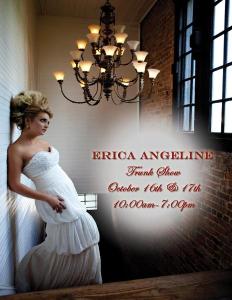 To all my Atlanta Brides, Erica Angeline is hosting a trunk show for the ladies who are looking for a unique and glamorous gown. Information to the trunk show is below. Enjoy!!