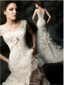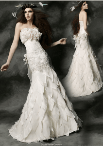 Princess Franke has found a great designer- Maria Karin. I stumbled across Maria as I was trying to find a unique designer to showcase. This is great addition to my Fairy Tale inspiration board. The gowns are dreamy and stunning. The 2011 collection is for the bride who is daring and is not afraid to wear something different. Please pay attention to the unique detailing. Five stars on the red carpet.