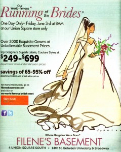 Ladies, Filene’s Basement Bridal event is taking place on Friday June 3rd, 2011. Please details below.