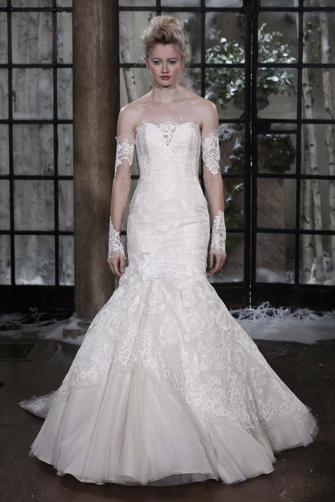 Since the nuptials of Amal Alamuddin and George Clooney, the classic trend is making a come back. Mrs. Clooney set the trend with the gorgeous Osca de La Renta lace gown. This bridal market, many designers followed suit with princess ball gowns, intricate lace details and sleeves.