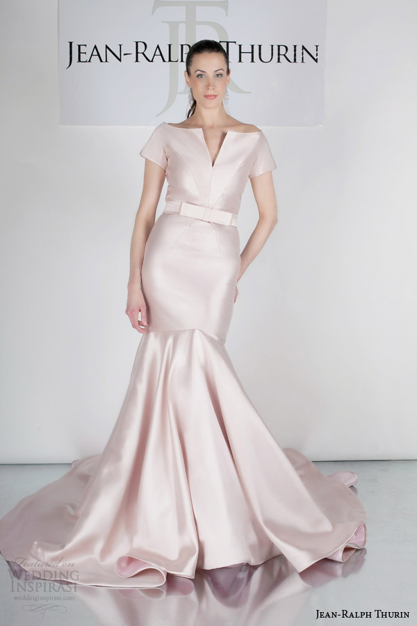 jean-ralph-thurin-bridal-spring-2015-johanna-short-sleeve-blush-colored-wedding-dress