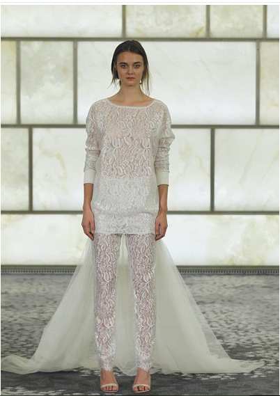 While deciding what to wear today, I decided that I just wanted to be comfortable. The weather has changed and it is a little colder than yesterday. I wonder if brides ever felt that way. Wedding gowns tend to be a little heavy and you will be wearing it for 6-8 hours. That is a full work day! Rita Vinieris, the designer behind the luxury line Rivni, had that in mind when she designed Sabia. When I saw the well made pant suit during bridal market, I was screaming in my mind Yes!!!! Now, I have the option of being comfortable on my wedding day. This will be great idea for a second dress. You can walk around cozy and fabulous. Future brides, party hard with Sabia at the reception. Thank you Rivini!!!