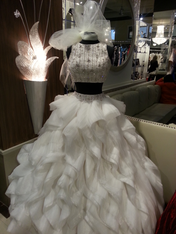 Ladies, if you have been working out all winter, this is the gown for you. The Cropped Top Beaded Gown by Stephan Yearick. This gown can be found at Bridal Reflections NYC.