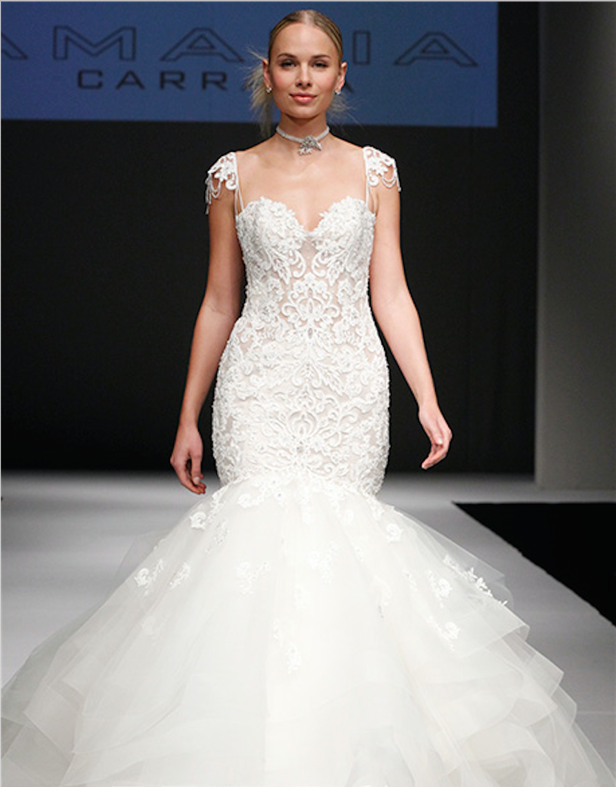 Let us check out some of the looks that walked the runway during NY Bridal Fashion Week. Many styles for the future curvy bride showcased this season. From stunning beautiful A line, Fit and Flare and Mermaid silhouettes will give that WOW factor you are looking for……