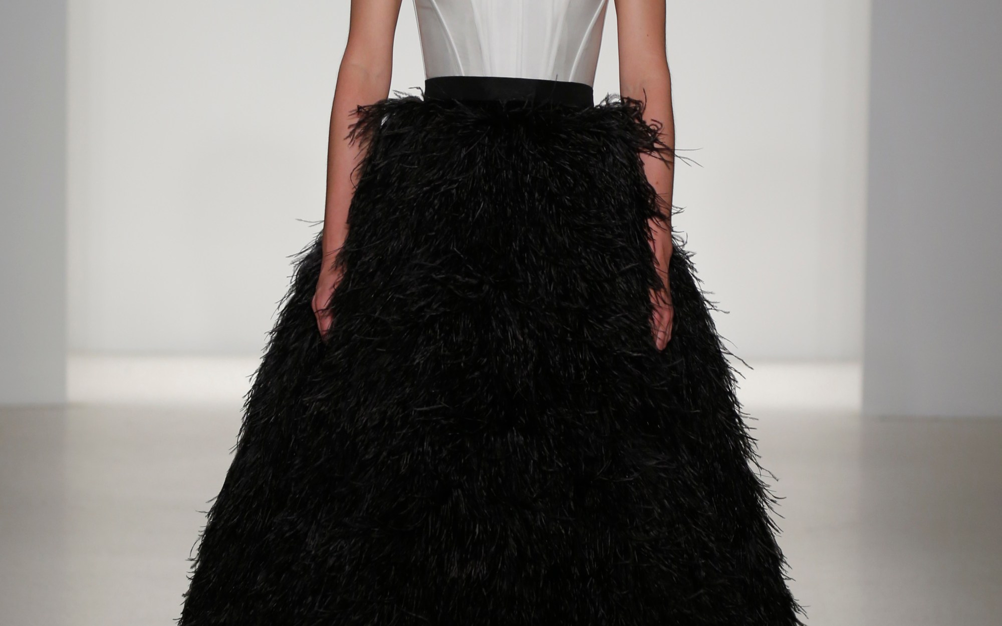 Faetaninni used hints of black balanced by touches of barely-there blush blend together to create this season’s Spring 2018 collection of “dark romance.” Inspired by Shakespeare and innocent feelings of seduction, This season brides will black lace, underlays, and feathers pair with whimsical floral details and corsetry seaming to highlight artistic elements in a truly wearable way. Ladies, you will see illusion laces and shimmering effects on fabrics to make your day sexy and full of sparkle. Check out some of the stunning gowns.